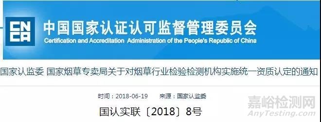 為加強(qiáng)煙草行業(yè)檢驗(yàn)檢測機(jī)構(gòu)管理,根據(jù)《中華人民共和國計(jì)量法》、《中華人民共和國認(rèn)證認(rèn)可條例》和煙草行業(yè)檢驗(yàn)檢測工作的特殊性,國家認(rèn)證認(rèn)可監(jiān)督管理委員會(huì)(以下簡稱“國家認(rèn)監(jiān)委”)和國家煙草專賣局決定對煙草行業(yè)檢驗(yàn)檢測機(jī)構(gòu)實(shí)施統(tǒng)一的資質(zhì)認(rèn)定管理?,F(xiàn)將有關(guān)事項(xiàng)通知如下:
