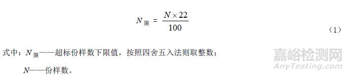 7.3 如果固體廢物份樣數(shù)大于100,應(yīng)按照下列公式確定超標(biāo)份樣數(shù)限值: