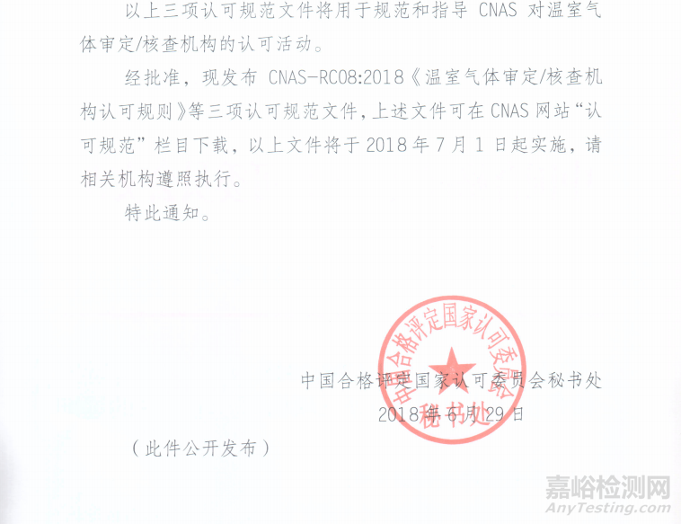 2018年7月1日,CNAS-RC08:2018《溫室氣體審定/核查機(jī)構(gòu)認(rèn)可規(guī)則》等三項(xiàng)認(rèn)可規(guī)范文件將正式施行,公告文件全文如下。