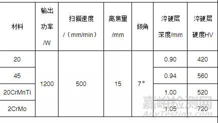 表3 幾種材料激光淬火工藝參數(shù)及效果