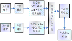 認(rèn)證需要FCC或由FCC指定的電信認(rèn)證機(jī)構(gòu)TCB(Telecommunication Certification Body)根據(jù)申請和測試數(shù)據(jù)頒發(fā)認(rèn)證證書,并加貼有FCC ID號的認(rèn)證標(biāo)簽以表明其符合性,對于非美國境內(nèi)的實(shí)驗(yàn)室檢測,必須以兩國間有實(shí)驗(yàn)室相互認(rèn)可協(xié)議為前提(流程見下圖)。