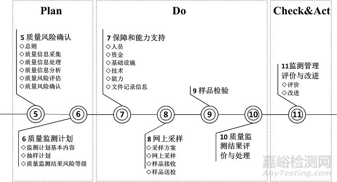 包括產(chǎn)品質(zhì)量信息的采集、質(zhì)量風(fēng)險分析、產(chǎn)品抽樣及采樣、產(chǎn)品檢驗、質(zhì)量風(fēng)險判定等一系列活動。