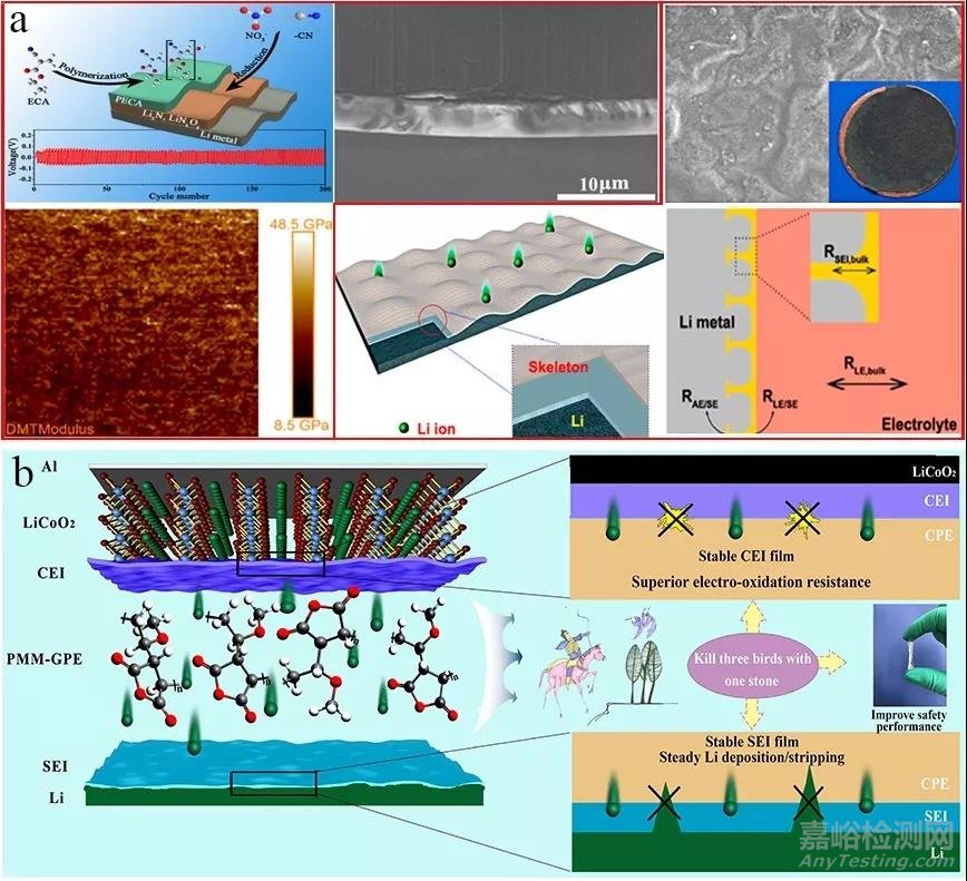 圖1(a)人工構建有機/無機復合電解質(zhì)膜(SEI)修飾的高性能鋰金屬負極;(b)聚乙烯基甲醚-馬來酸酐多功能聚合物電解質(zhì)