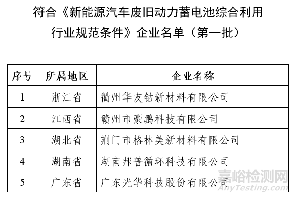 附件:符合《新能源汽車廢舊動力蓄電池綜合利用行業(yè)規(guī)范條件》企業(yè)名單(第一批)