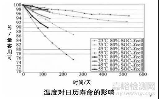 溫度的升高對電池的日歷壽命和循環(huán)壽命都有影響。