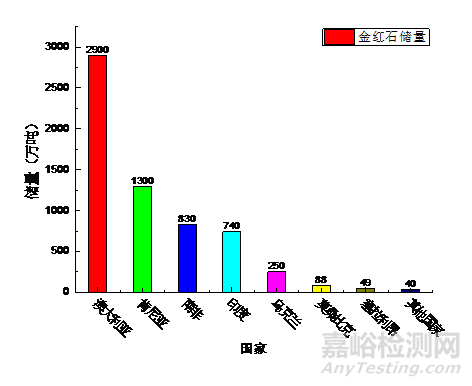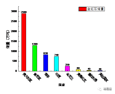圖4 各國的金紅石儲量情況