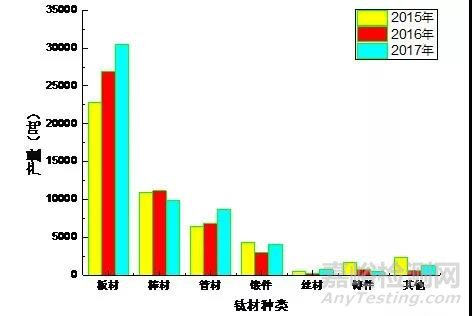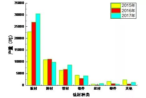 圖10 2015~2017年中國各類鈦材產(chǎn)量
