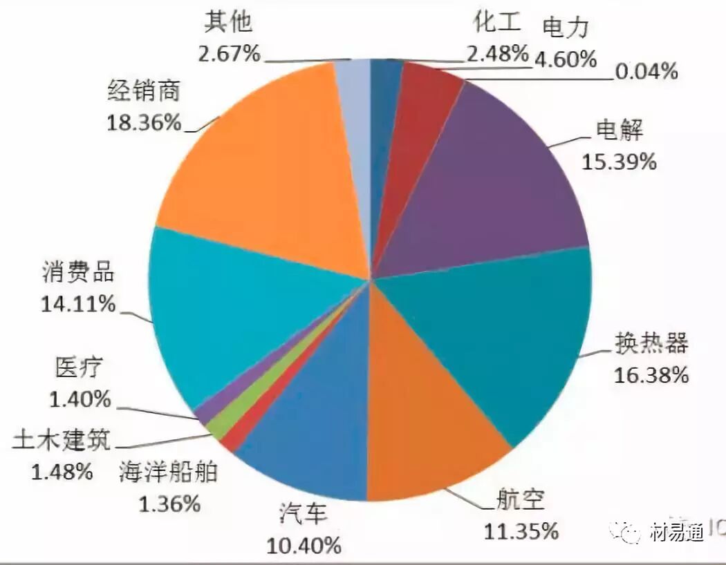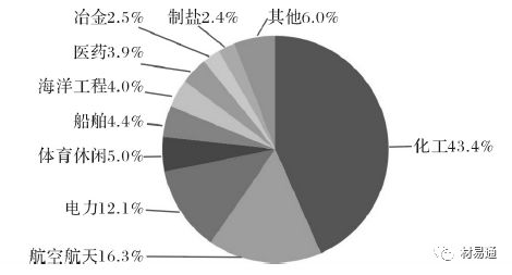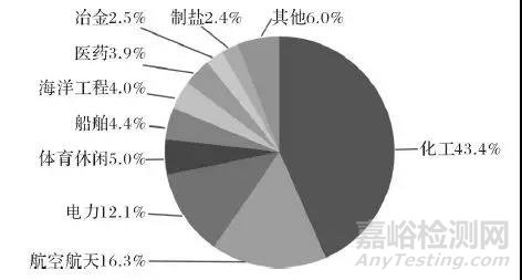 我國鈦材主要用于低端產(chǎn)業(yè),而2017年航空航天方面的應(yīng)用只占總量的16.3%,遠遠低于其他國家的利用占比。體現(xiàn)出我國高端鈦材加工能力的不足。