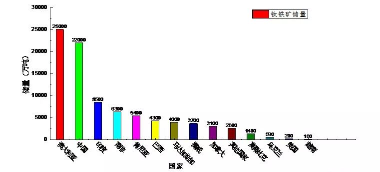 圖3 各國鈦鐵礦儲量情況