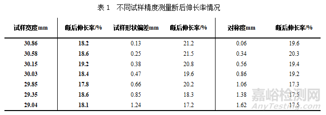 結(jié)果如表1所示,試樣的形狀尺寸偏差對斷后伸長率的影響最大,對稱度次之,寬度偏差影響最小。