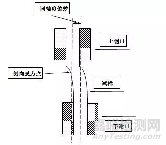 圖1 同軸度為1mm時拉伸試樣狀態(tài)示意圖