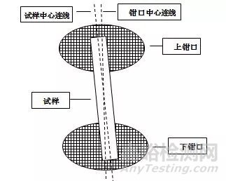 圖2 拉伸試樣夾持傾斜時的狀態(tài)示意圖