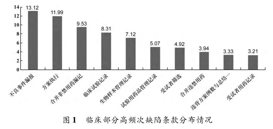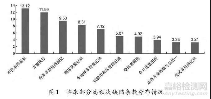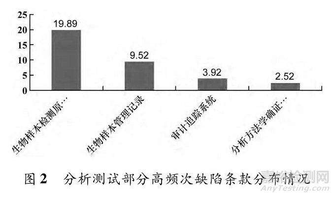 臨床部分和分析測(cè)試部分高頻次缺陷條款分布情況如圖1和圖2所示。