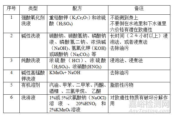根據(jù)不同的要求有各種不同的洗液。將較常用的幾種介紹如下: