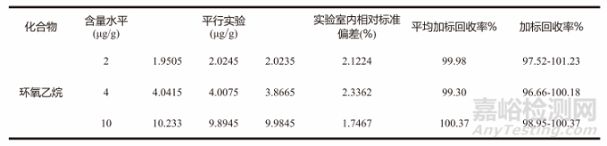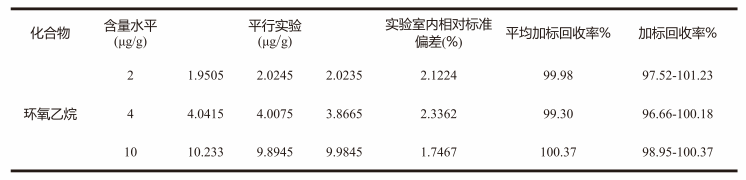 采用頂空-氣相色譜法測定醫(yī)療器械中殘留的環(huán)氧乙烷。該方法采用色譜柱分離,F(xiàn)ID檢測,樣品中環(huán)氧乙烷與其它組分很好的分離,環(huán)氧乙烷的線性較好,其線性相關(guān)系數(shù)在0.999以上,最低檢出限為0.3μg/g,定量下限為1.20μg/g,加標(biāo)回收率在96.66-101.23%之間,實(shí)驗(yàn)室內(nèi)相對標(biāo)準(zhǔn)偏差為1.75~2.33%。