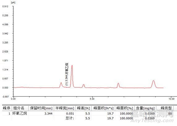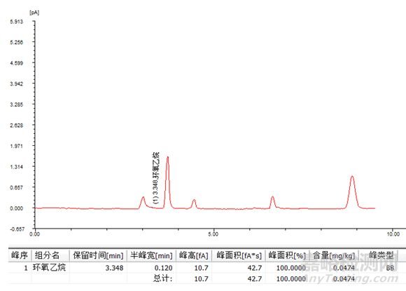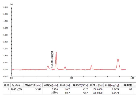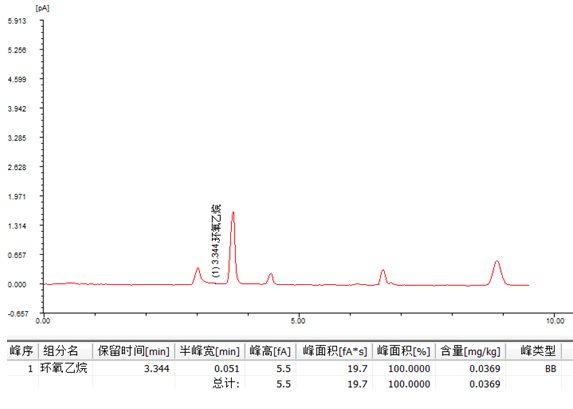環(huán)氧乙烷(0.06μg/mL)最低檢測限結(jié)果: