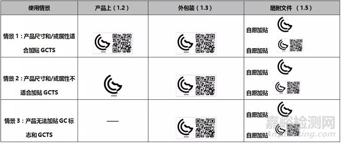 注:當(dāng)適用的GSO的法規(guī)不強(qiáng)制要求被認(rèn)證產(chǎn)品在產(chǎn)品本體上加施完整的GCTS時,應(yīng)考慮情景3