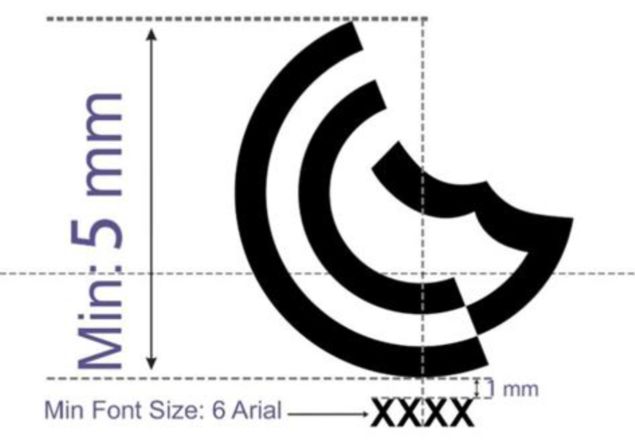 1.7.2 使用在產(chǎn)品上的GC標(biāo)志應(yīng)滿足下圖所示最小尺寸要求: