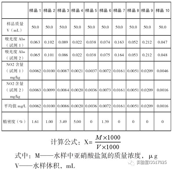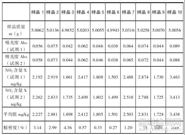 按GB5009.33-2016和GB/T5750-2006標(biāo)準(zhǔn)要求處理好樣品,依次加入對氨基苯磺酸溶液(或?qū)Π被交翘啡芤?2ml,并靜置3一5min,鹽酸萘乙二胺溶液1ml,混勻放置15min。在540nm波長下測定。結(jié)果如下: