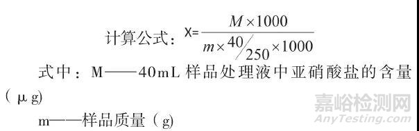 (4)亞硝酸鈉標(biāo)準(zhǔn)溶液(200μg/ml):準(zhǔn)確稱取0.1000g于110℃一120℃干燥恒重的亞硝酸鈉,加水溶解,移入500mI容量瓶中,加水至刻度,搖勻。
