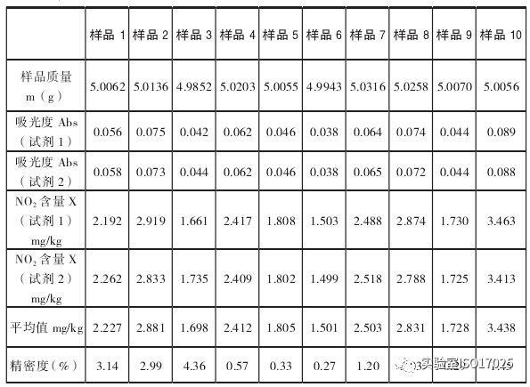 從以上實驗數(shù)據(jù)對比,可以看出,用對氨基苯磺酸作為重氮化試劑和用對氨基苯磺酞胺作為重氮化試劑,其精密度為在重復(fù)性條件下,獲得的兩次獨(dú)立測定結(jié)果的絕對差值不超過其算術(shù)平均值的10%,其結(jié)果是有效的。