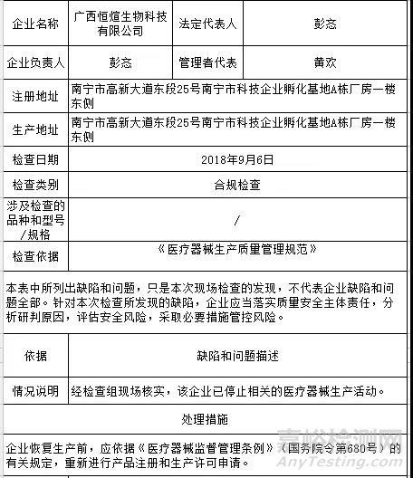 對廣西潤盟醫(yī)療科技有限公司飛行檢查通報 對廣西恒煊生物科技有限公司飛行檢查通報