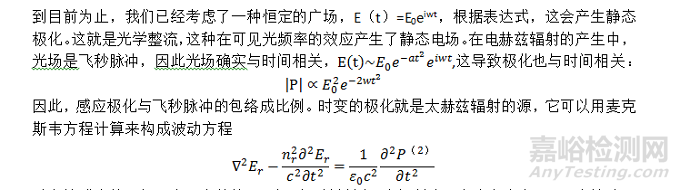 此表達(dá)式描述了電光晶體中一般電場(chǎng)感應(yīng)的極化。在接下來的部分,我們將看到這種效應(yīng)時(shí)如何用于產(chǎn)生并探測(cè)太赫茲輻射的。