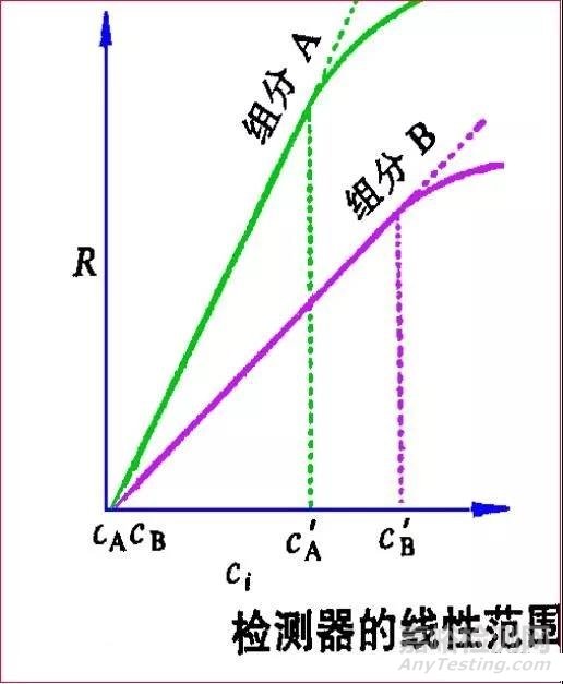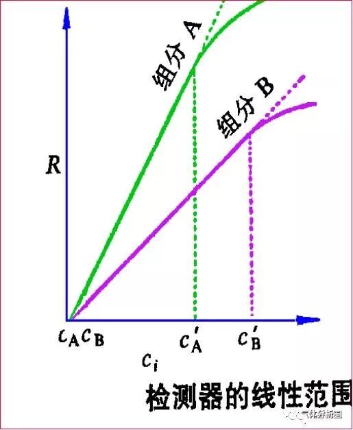 檢測(cè)器的線性范圍定義為在檢測(cè)器呈線性時(shí)最大和最小進(jìn)樣量之比,或叫最大允許進(jìn)樣量(濃度)與最小檢測(cè)量(濃度)之比。