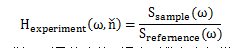 其中X(ω)是輸入電場的頻譜,Y(ω)是輸出電場的頻譜,H(ω)是材料的傳遞函數(shù),假定太赫茲分光儀是線性時(shí)不變的,在這種情況下,太赫茲分光儀的輸入信號由發(fā)射器產(chǎn)生,輸出信號應(yīng)該是穿過被測材料系統(tǒng)后的信號,實(shí)踐中,THs-TDs實(shí)驗(yàn)使用如下關(guān)系得可以輕易得到實(shí)驗(yàn)傳遞函數(shù):