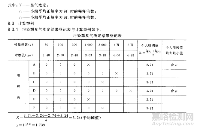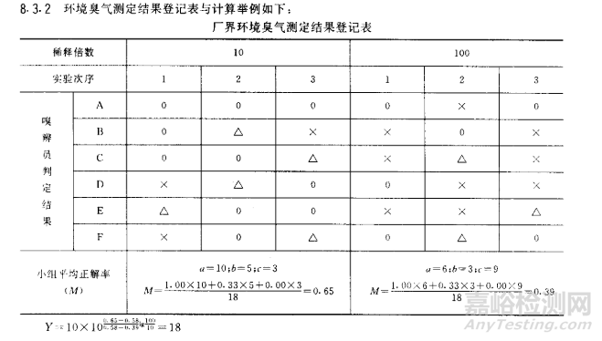 將嗅辨員報(bào)出的標(biāo)碼統(tǒng)計(jì)出正確率,與稀釋倍數(shù)等要素經(jīng)過上述公式運(yùn)算,得出臭氣濃度閾值,這個(gè)閾值沒有單位,只有一個(gè)數(shù)值,將數(shù)值對(duì)比指標(biāo)范圍,超出范圍的即判定超標(biāo)。