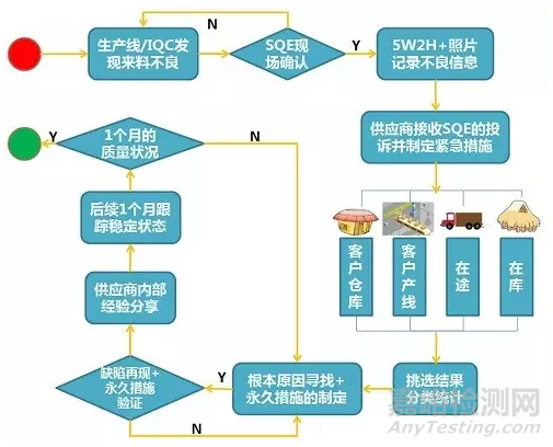 接下來至少追溯1個月保證其有效措施實施的有效性。至此才算是徹底的處理完畢了供應(yīng)商的來料不良~總結(jié)在下圖: