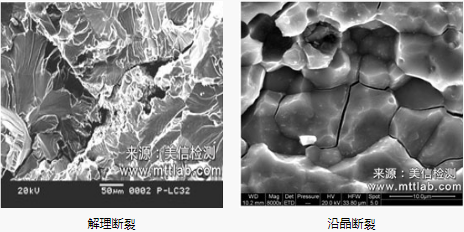 (1)金屬材料斷裂失效分析。常見以磨損、腐蝕、斷裂、變形等失效形式存在。通過對斷口微觀形貌的觀察,根據脆性斷裂及韌性斷裂機理,結合材料受力狀態(tài)分析,找出失效根源。