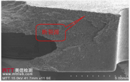 (4)某車用塑料零件出現斷裂現象,使用SEM觀察斷口情況。