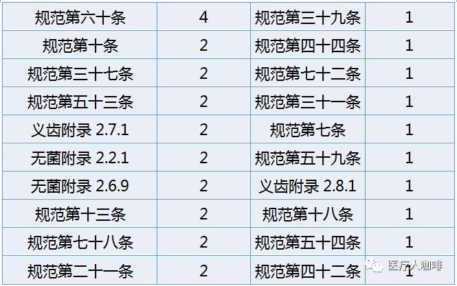 缺陷對應(yīng)條款,預(yù)料之中主要是與規(guī)范相關(guān)的條款,涉及542條,其次是無菌105條。