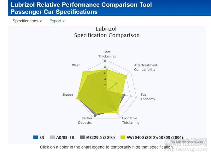 秉持有話直說的原則,我們不賣關(guān)子,直接亮出“殺手锏”:全球知名添加劑企業(yè)路博潤開設(shè)的“路博潤乘用車潤滑油標準相對性能比較工具”(Lubrizol Relative Performance Comparison Tool for Passenger Car Specifications),直觀比較各標準的差距。