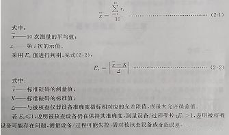檢査中心點(diǎn)示值誤差。保持天平清潔和天平室溫濕度,按照操作規(guī)程,預(yù)熱30min,去皮,將標(biāo)準(zhǔn)砝碼(X)輕輕放在稱盤(pán)上,待天平穩(wěn)定后,讀取示值(x),重復(fù)10次,按式(2-1)求平均值: