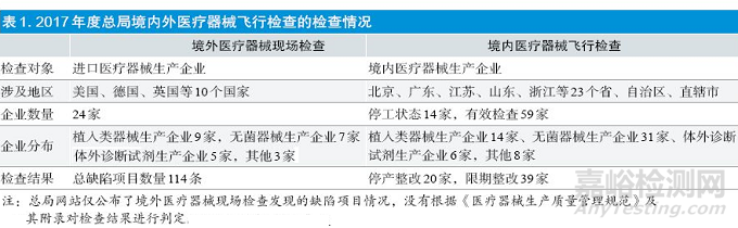 1.2017年度總局境內外醫(yī)療器械飛行檢查基本情況