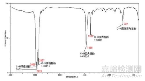 此圖為Octane(辛烷)紅外光譜圖 ,縱坐標(biāo)為透過(guò)率,橫坐標(biāo)為波長(zhǎng)λ ( μm )或波數(shù)(cm-1)