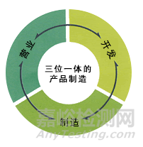 信越化學十分重視研究開發(fā),將研究開發(fā)能力定位為開拓未來的重要“資產(chǎn)”,開發(fā)了“營業(yè)―開發(fā)―制造”三位一體的研究開發(fā)體制,如圖1 所示。信越化學以這種三位一體的獨創(chuàng)性研究開發(fā)體制來密切配合客戶需求,并進行各項開發(fā)研究。通過營業(yè)活動,將爭得的市場需求傳達給開發(fā)部門,以此來設定研究主題。開發(fā)部門按照所設定的主題進行原料的開發(fā),同時,在與制造部門密切配合的基礎上,利用工廠設備,進行以量產(chǎn)化為目標的實踐性開發(fā)研究。為追求效率,信越化學將所有研究開發(fā)部門設置于廠地內(nèi),并與各事業(yè)、制造部門緊密結合。目前,信越化學有8個研發(fā)部門,分別為聚氯乙烯·高分子材料研究所、有機硅電子材料技術研究所、精密功能材料研究所、合成技術研究所、新功能材料技術研究所、磁性材料研究所、半導體磯部研究所和半導體白河研究所。