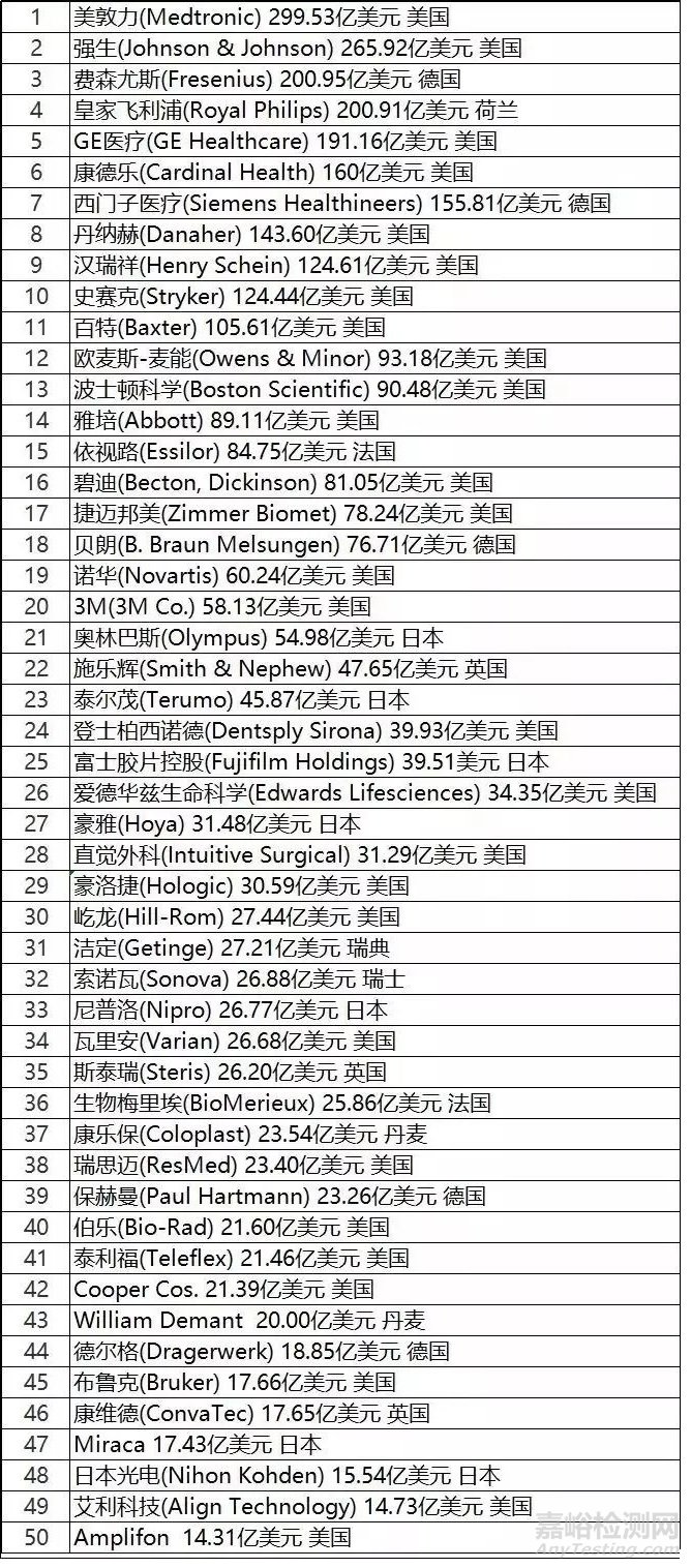 下表是前50強(qiáng)醫(yī)療器械企業(yè)排名
