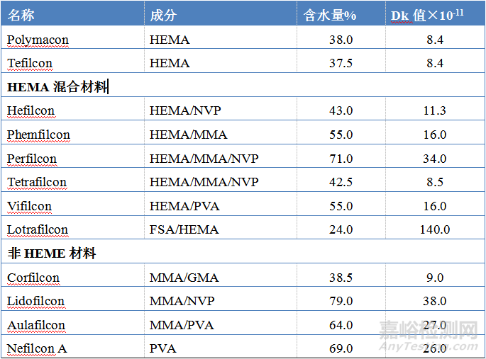 軟性角膜接觸鏡主要由以下三種:①聚甲基丙烯酸羥乙酯(PHEMA);②HEMA混合材料,以HEMA為基質(zhì),加入其他輔料的親水性軟鏡材料;③非HEME材料,不含有HEME成分的親水性軟鏡材料。