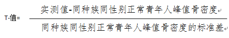 T-值:表示相對(duì)于同種族同性別正常青年人正常參考數(shù)據(jù)庫(kù)的一個(gè)計(jì)算結(jié)果。