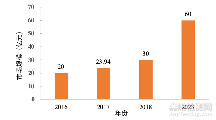 隨著醫(yī)療設(shè)備技術(shù)的進(jìn)步,與可穿戴設(shè)備兼容的智能手機(jī)醫(yī)療保健應(yīng)用程序越來越多,醫(yī)療服務(wù)供應(yīng)商對無線連接青睞越來越明顯,以及大眾對身體健康的重視度日漸增加,可穿戴醫(yī)療設(shè)備產(chǎn)業(yè)迎來爆發(fā)式增長。2016年全球可穿戴醫(yī)療器械市場總銷售額為20 億美元,2017年為23.94 億美元,2018年超過30 億美元,預(yù)計2023年有望超過60 億美元,產(chǎn)業(yè)發(fā)展充滿活力。見圖1。