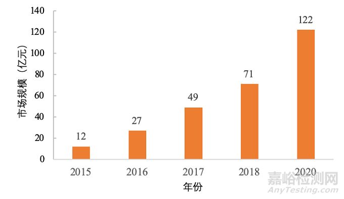 慢性病人群不斷擴(kuò)大,且呈現(xiàn)年輕化趨勢,社會老齡化現(xiàn)象日益嚴(yán)重,人們的健康觀念正逐漸由被動治療轉(zhuǎn)變?yōu)橹鲃颖O(jiān)測和預(yù)防,希望盡早發(fā)現(xiàn)可能的風(fēng)險,并及時干預(yù)以預(yù)防疾病的發(fā)生。近年來,我國可穿戴醫(yī)療設(shè)備市場呈現(xiàn)快速發(fā)展態(tài)勢。數(shù)據(jù)顯示,2015年中國可穿戴醫(yī)療設(shè)備市場規(guī)模達(dá)到12 億元,預(yù)計2020年有望突破122 億元。見圖2。
