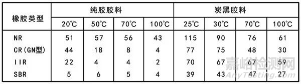 由表8-20可見,常溫下天然橡膠和氯丁橡膠的撕裂強度較高,這是由于結(jié)晶型橡膠撕裂時產(chǎn)生誘導(dǎo)結(jié)晶后、使應(yīng)變能力大為提高。但是高溫下,除天然橡膠外,撕裂強度均明顯降低。填充炭黑后的硫化膠撕裂強度均有明顯的提高,特別是丁基橡膠的炭黑填充膠料,由于內(nèi)耗較大,分子內(nèi)摩擦較大,將機械能轉(zhuǎn)化為熱能,導(dǎo)致撕裂強度較高。
