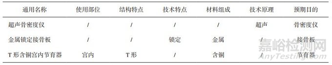 “具有相同或相似預期目的”,是指產(chǎn)品的預期使用相同或相似;“共同技術(shù)”是指產(chǎn)品具有相同或相似的使用部位、結(jié)構(gòu)特點、技術(shù)特點、材料組成、技術(shù)原理等。由于醫(yī)療器械的復雜性,形式的多樣性,需要從以上方面綜合考慮,且不同領域產(chǎn)品通用名稱命名側(cè)重點不同。其他個性特征不應列入通用名稱,可在商品名、規(guī)格型號、產(chǎn)品描述和預期用途中體現(xiàn)。如表 2所示