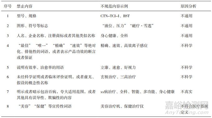 《規(guī)則》明確了通用名稱的9項禁止性內(nèi)容,是對基本要求的進一步說明和闡釋,以快速篩除現(xiàn)有產(chǎn)品名稱中的不適當內(nèi)容和不規(guī)范用詞,并指導企業(yè)對新產(chǎn)品的命名進行規(guī)范,各項具體分析詳見表 3。