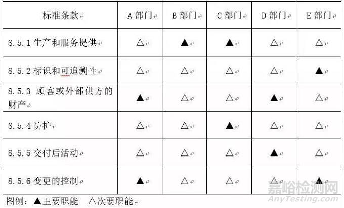 有了各部門在管理體系中職能的分配,內(nèi)審時的檢查表才有了生成的依據(jù),如對上表中的E部門就須重點檢查其工作過程是否符合8.5.2標(biāo)識和可追溯性和8.5.6變更的控制的標(biāo)準(zhǔn)要求。而每一條明確的標(biāo)準(zhǔn)要求都對應(yīng)著一個或幾個標(biāo)準(zhǔn)問題,在現(xiàn)場審核時被提出。