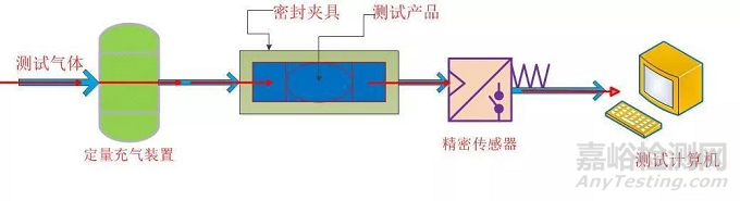 適用于要求不高的測試場合。如:IP等級防水測試,如戶外電器產(chǎn)品,方法是腔體一側(cè)壓,另一側(cè)(腔體)收集泄漏氣體且盡可能減小腔體體積,以增加單位泄漏量下的壓力的變化速度。