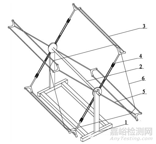 1、主體支架;2、中心軸;3、繞絲架;4、伸縮桿;5、固定桿;6、碳纖維復絲